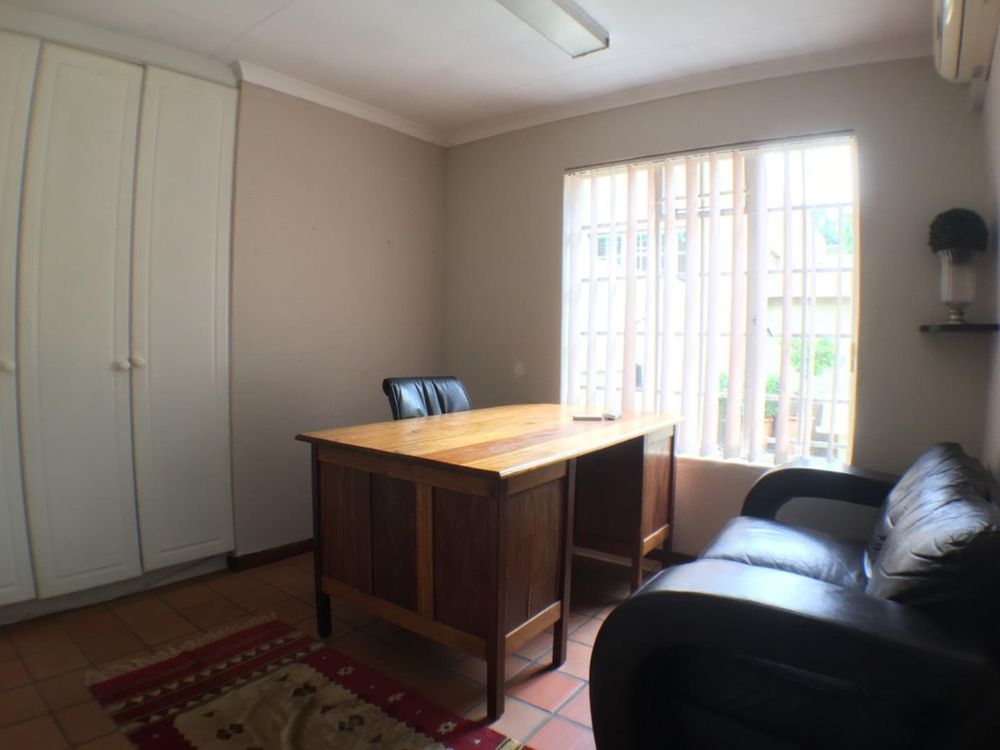 Single office space available for rent in a neat, communal office setup. The offices are easy to locate, situated on a main road in Old Faerie Glen. Included in the rent are a communal kitchen, a small boardroom, and fiber internet. Backup power is provided by a generator. Ample on-street parking is available. Occupancy is immediately available.