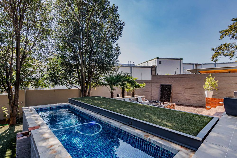 Outside, the patio, overlooking the small garden and sparkling pool provides a serene backdrop for relaxation or entertaining. Whether enjoying a quiet morning coffee or hosting a summer soirée, this outdoor space is versatile and inviting.
