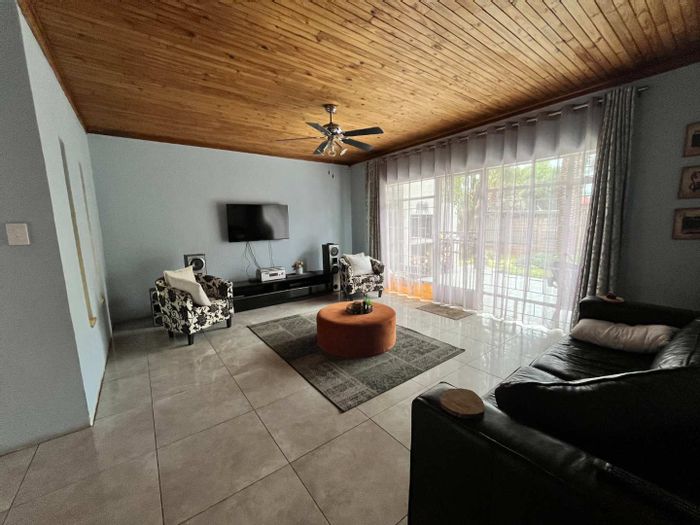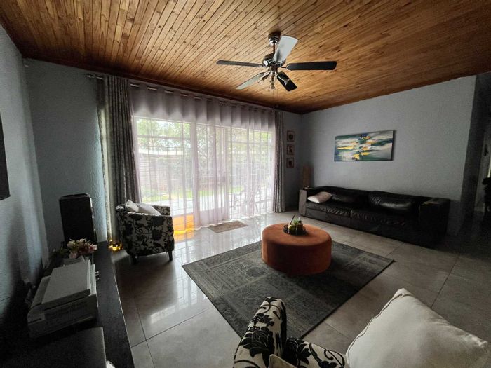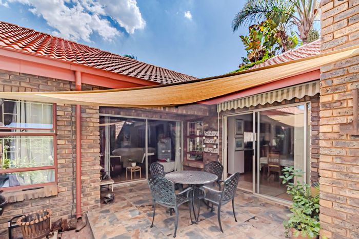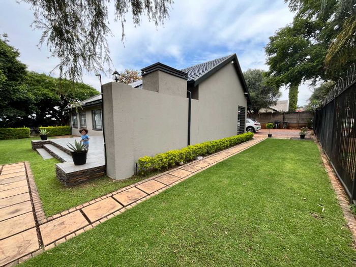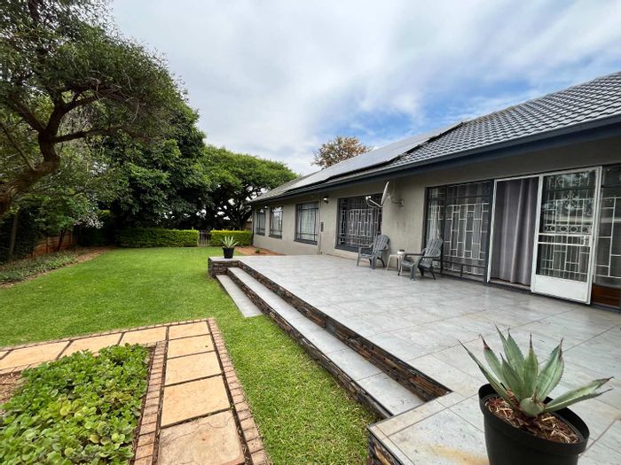Entertain outdoors and enjoy relaxed family living in tree-lined Meyerspark, with a patio featuring built-in braai, large irrigated garden and modern open-plan kitchen; four bedrooms, two bathrooms, double garage.