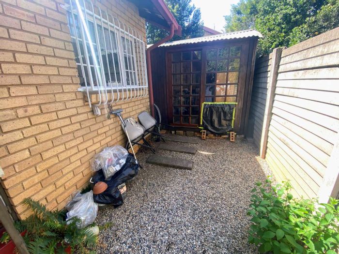 Two-bedroom simplex with private garden, bathroom, and versatile Wendy house in a secure complex. Ideal for downsizing or first-time buyers.