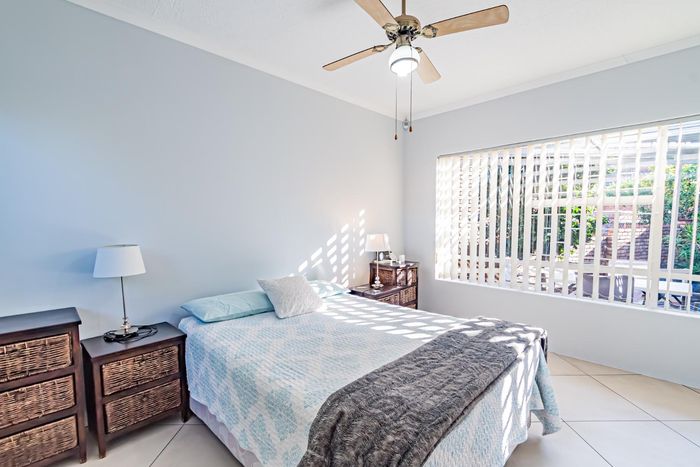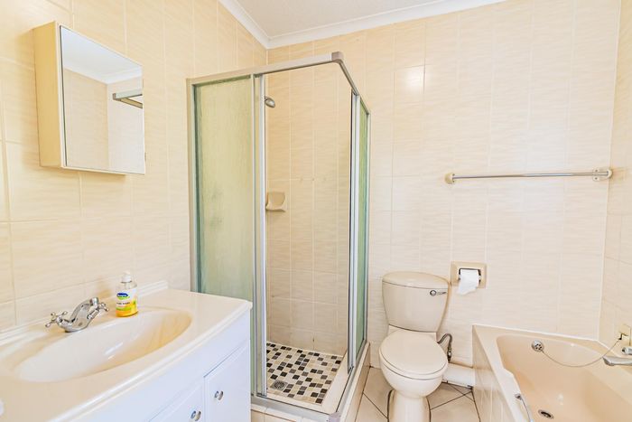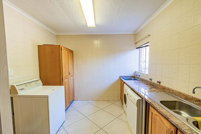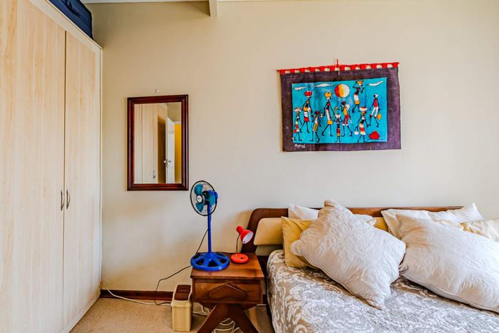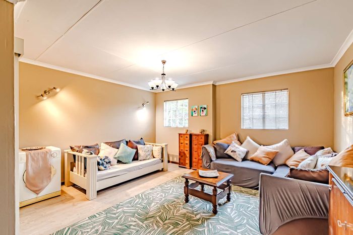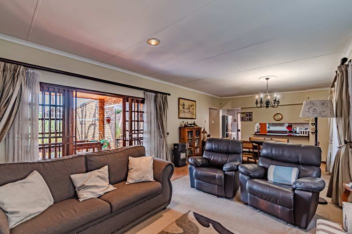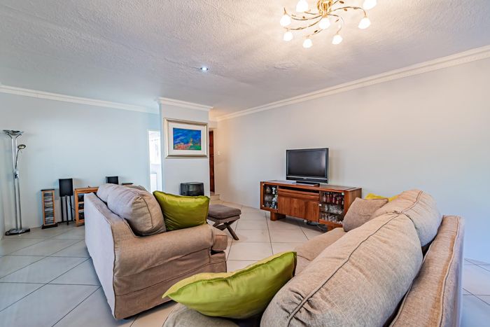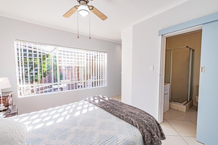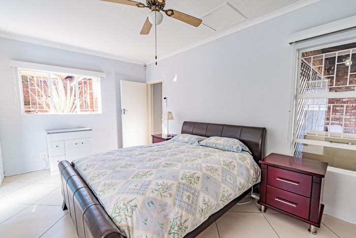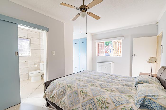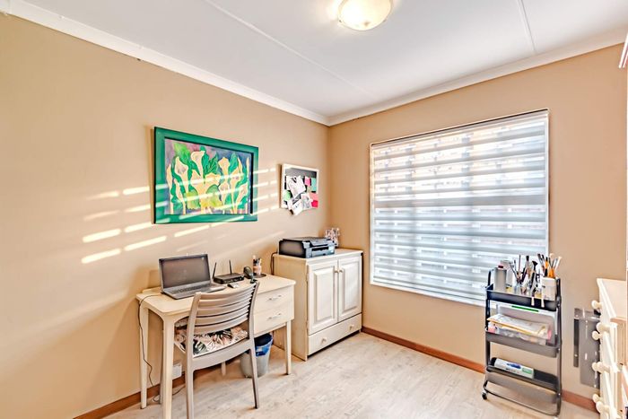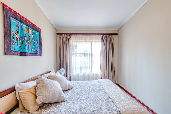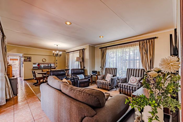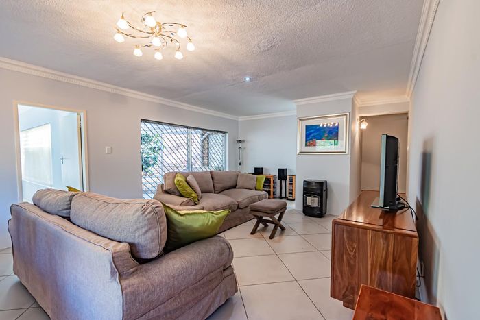 Single-storey cluster home in secure Faerie Glen complex with 2 bedrooms, 2 baths, open-plan living, double garage, and garden.