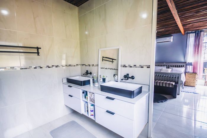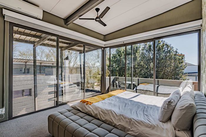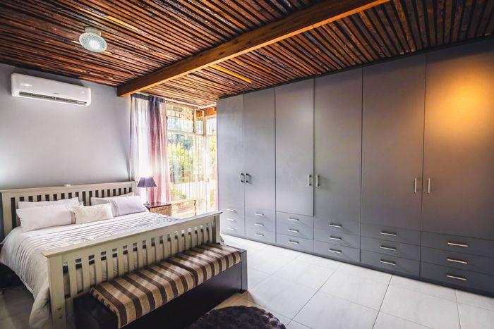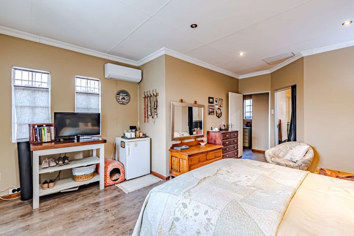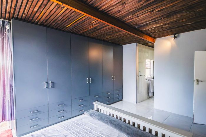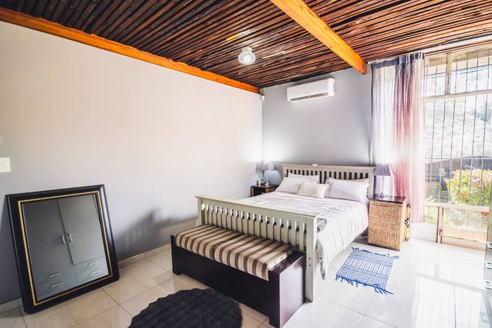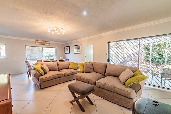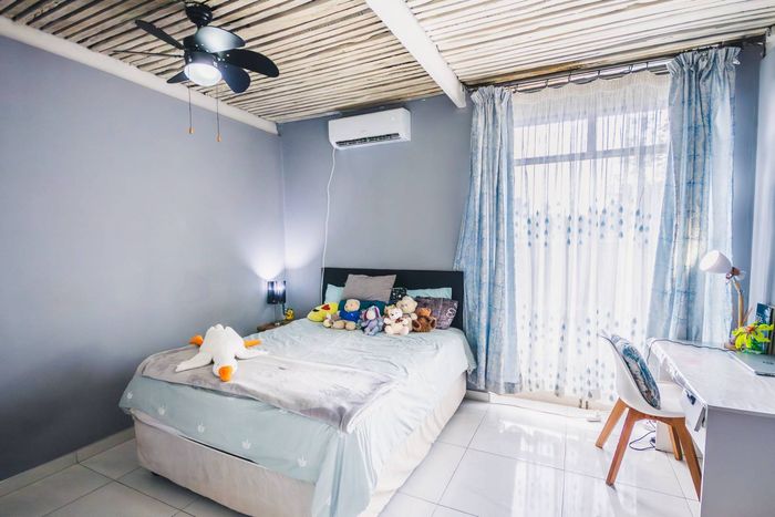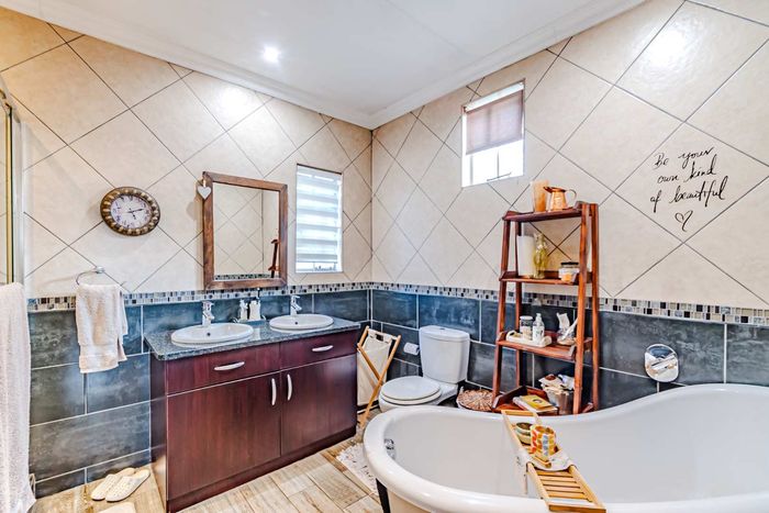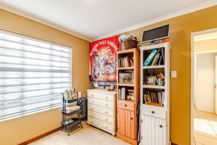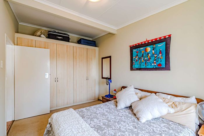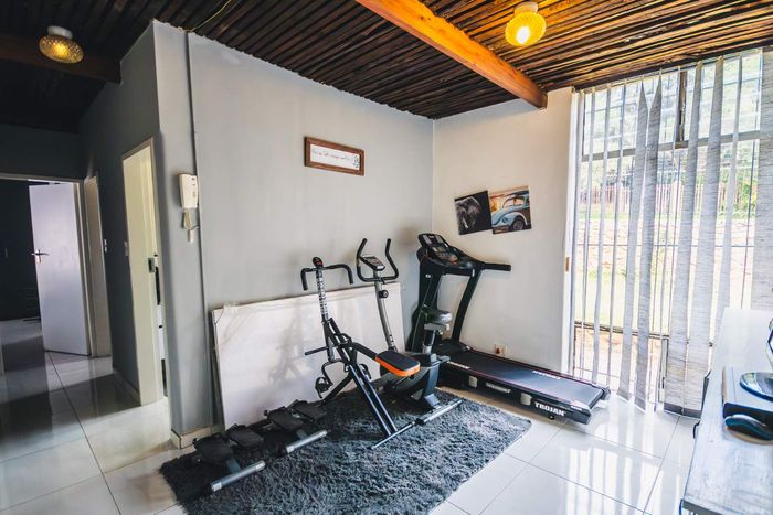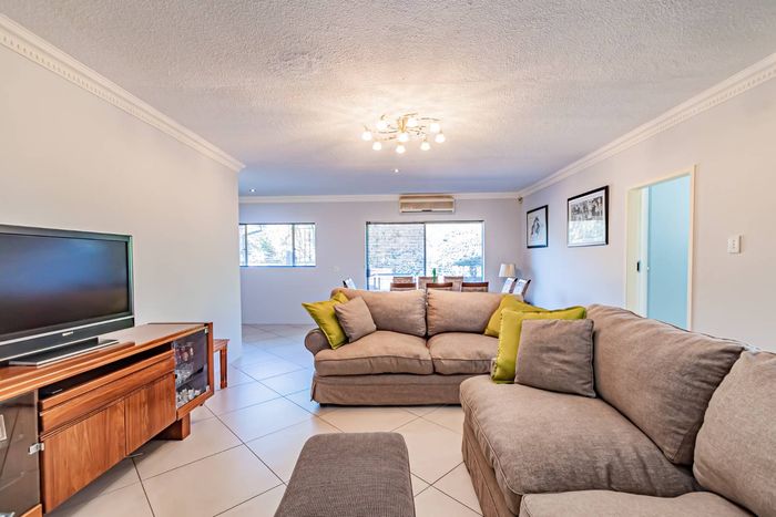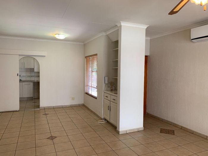 Single-storey cluster home in secure Faerie Glen complex with 2 bedrooms, 2 baths, open-plan living, double garage, and garden.