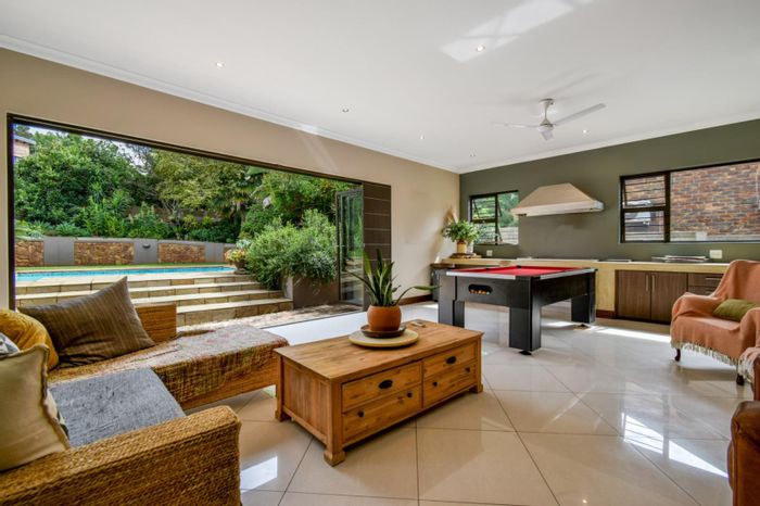 Enjoy hilltop Faerie Glen living with close schools and routes; private irrigated garden plus lapa with built-in braai and mountain-view main-suite balcony. Three beds, 2.5 baths, double garage.