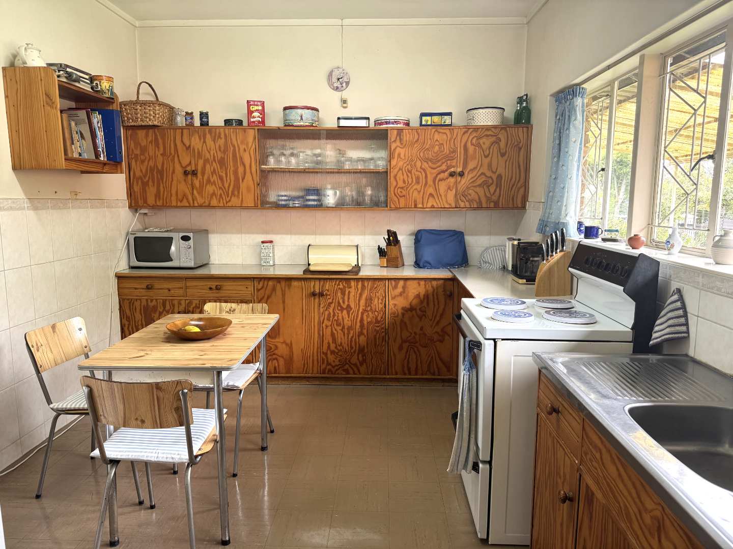 It has a large wooden kitchen with stove and separate laundry.