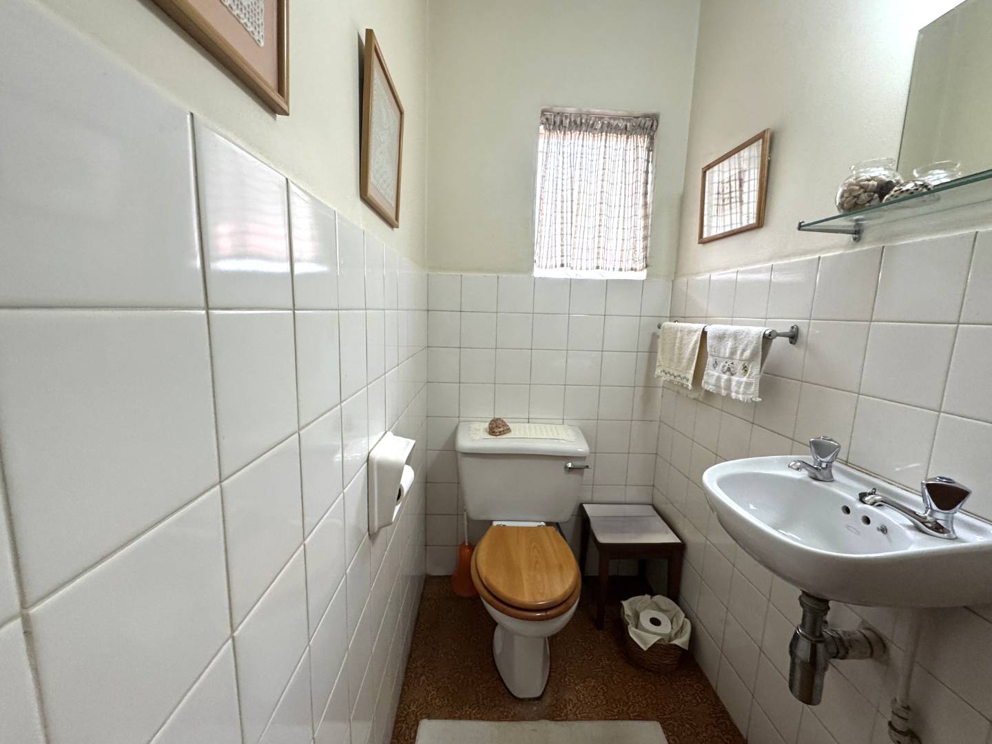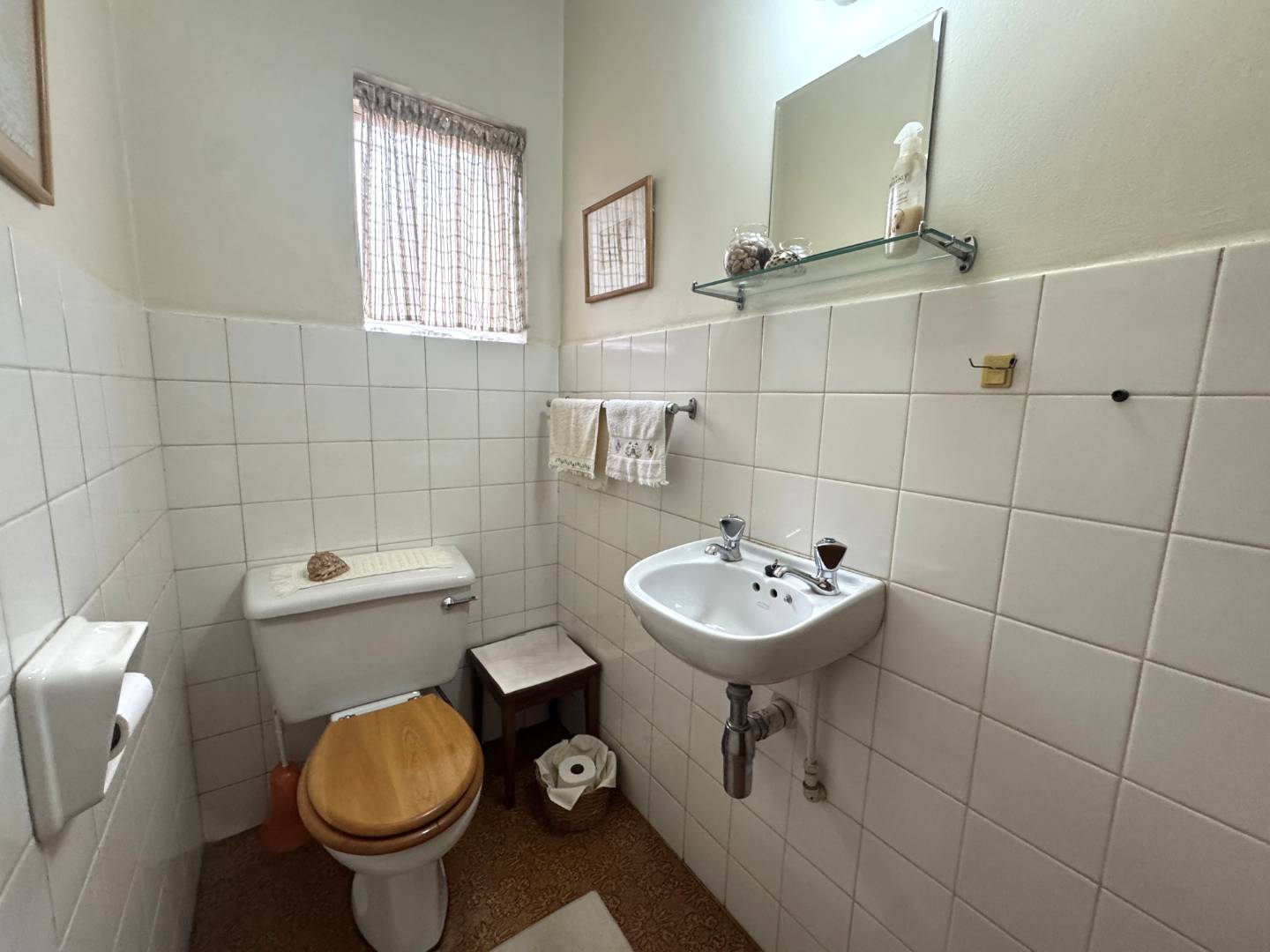 The second bathroom has a shower, basin and a separate toilet.