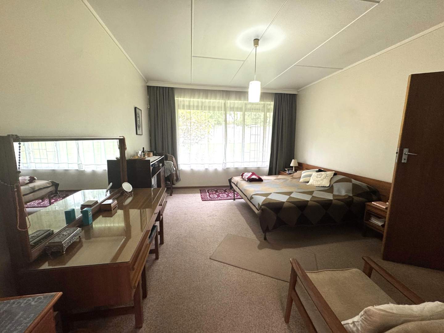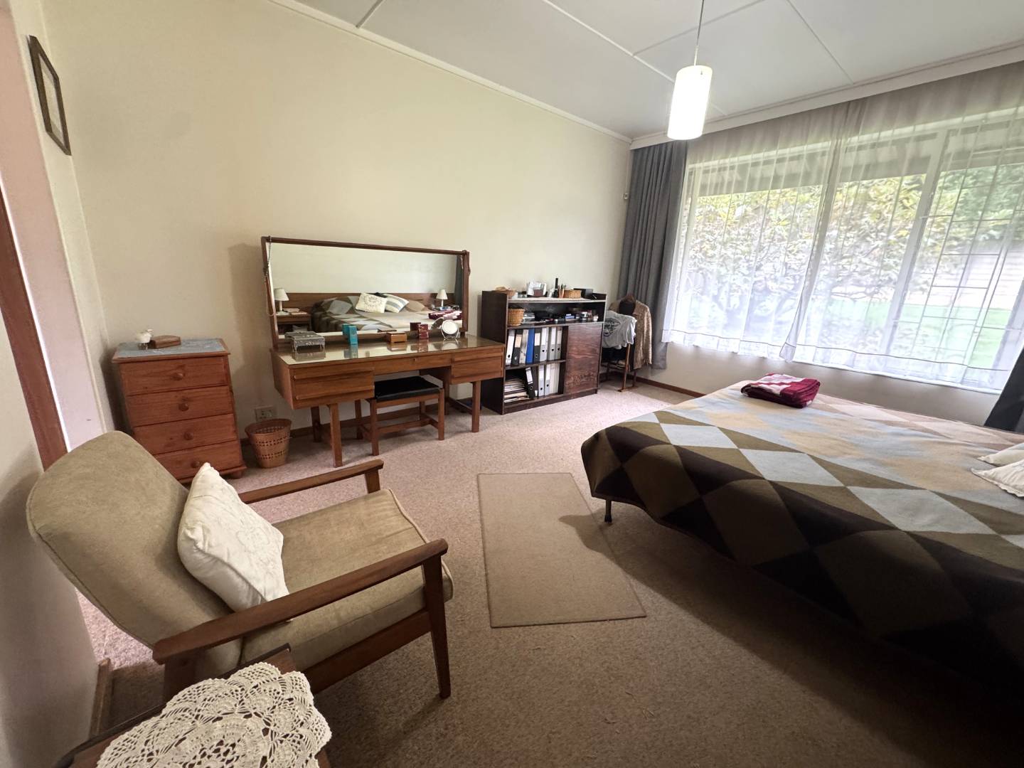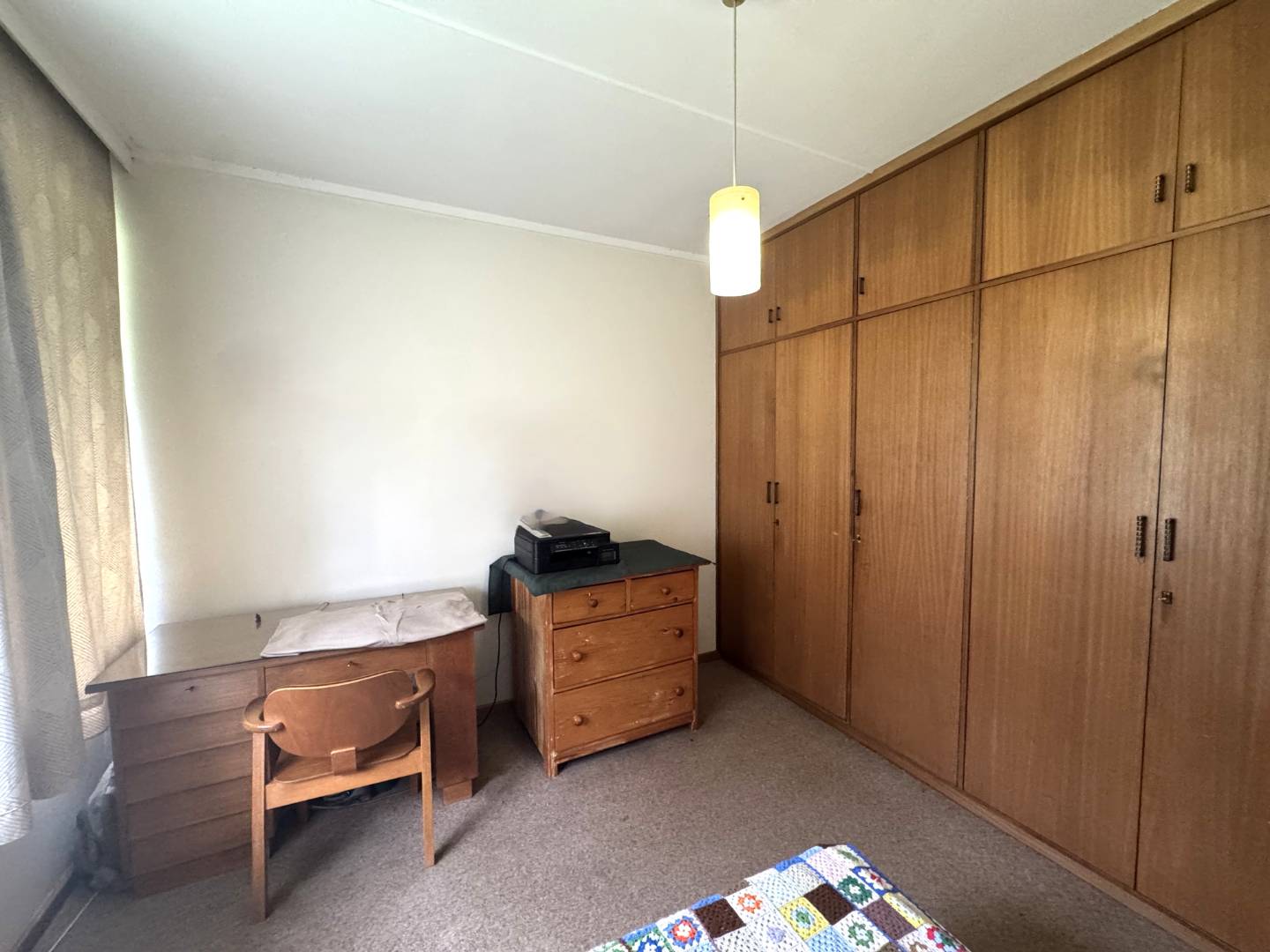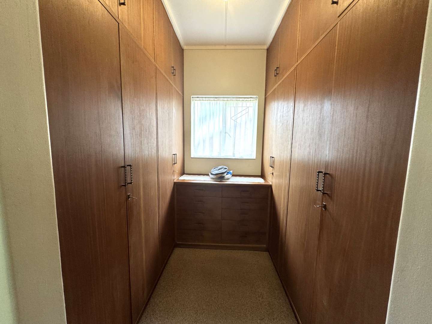 The main bedroom has a dressing room with lots of cupboards and a chest of drawers.