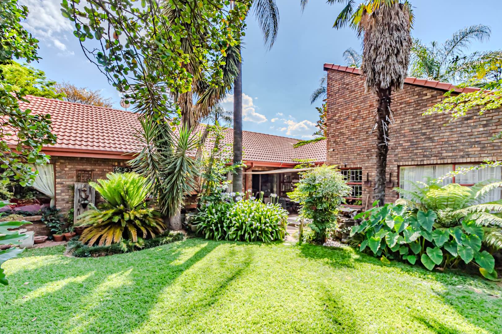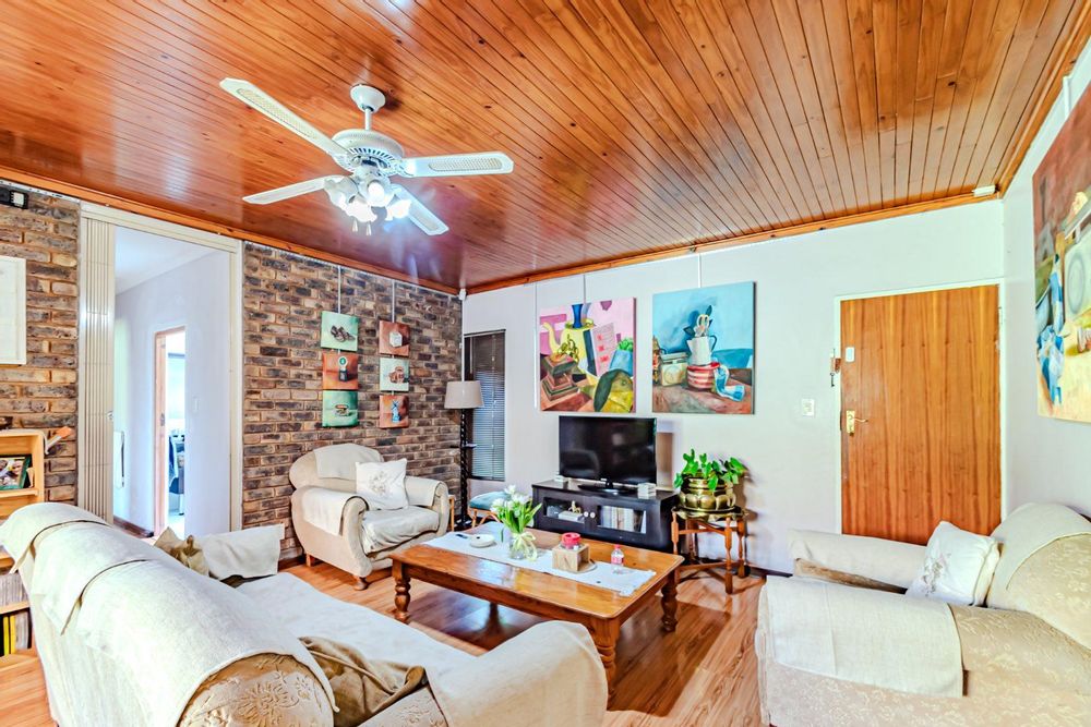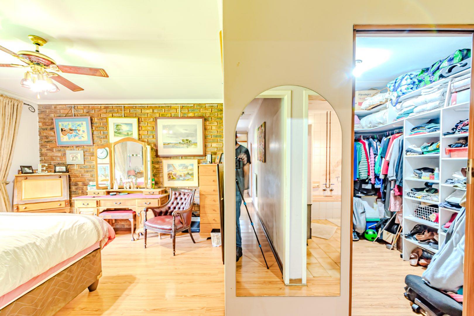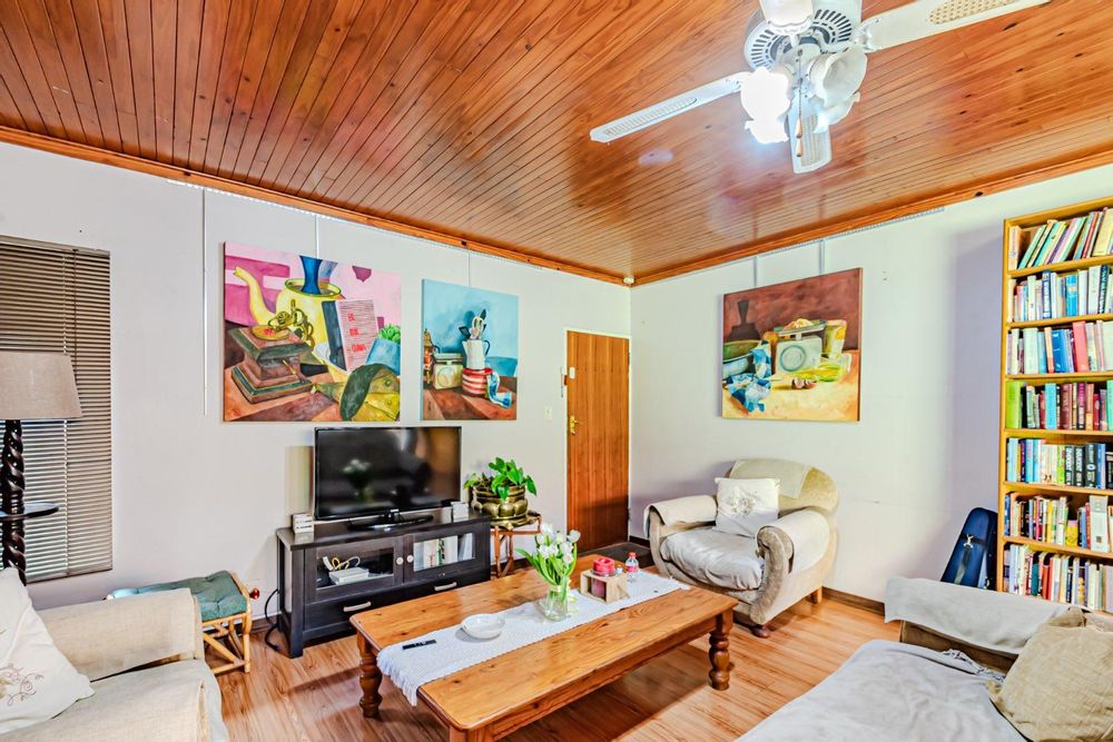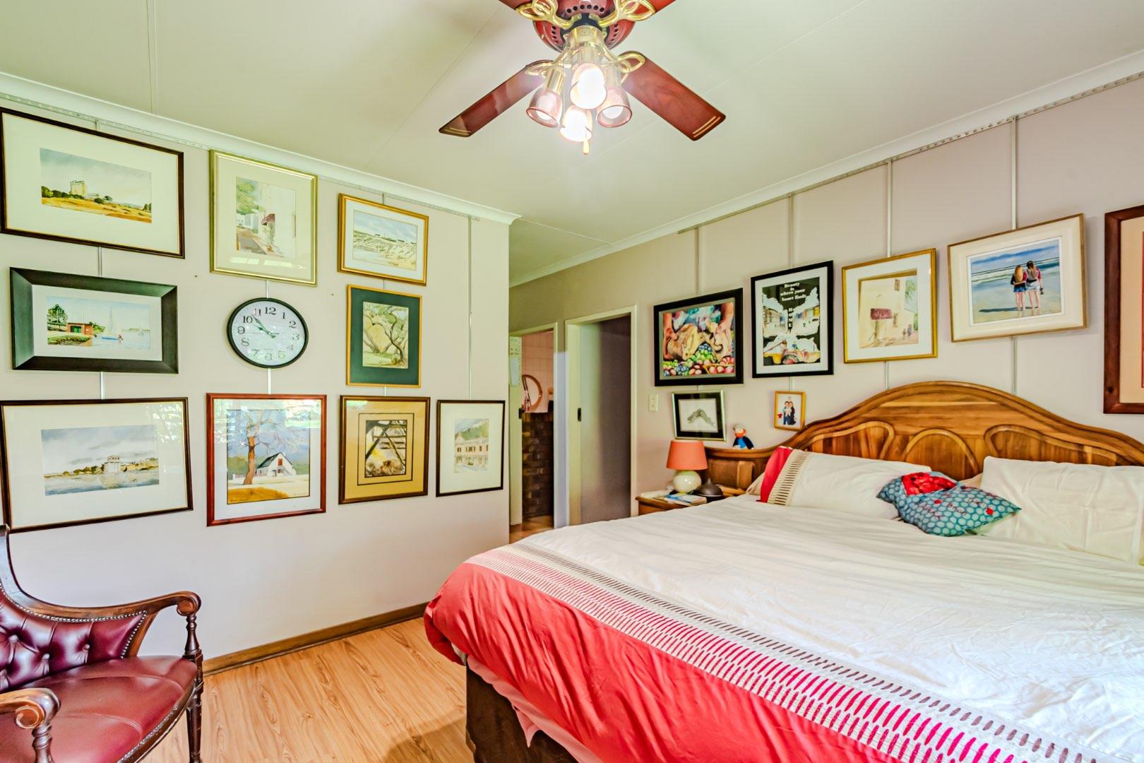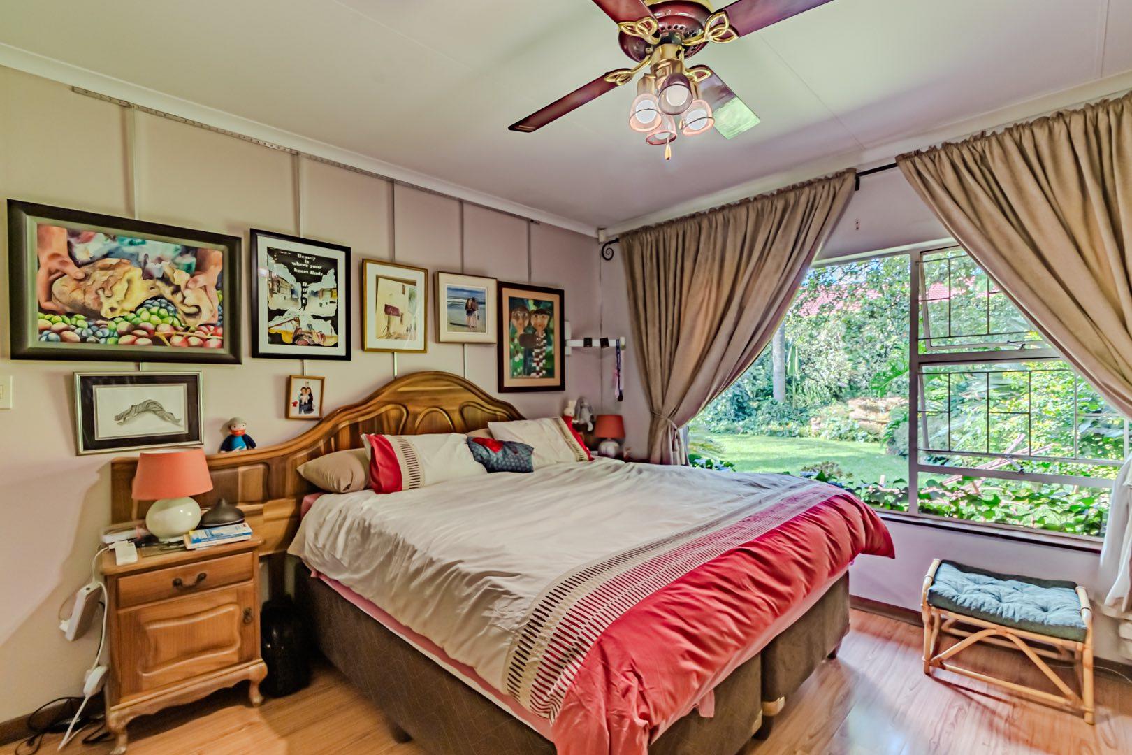 The kitchen has a functional design with granite worktops and solid wood cupboards, complemented by a separate scullery that enhances storage and preparation capabilities. Parking is generously catered for with double automated garages and an additional carport suitable for a trailer or small vehicle. The property's outdoor space includes a well-established, consistently maintained garden, creating an attractive external environment.