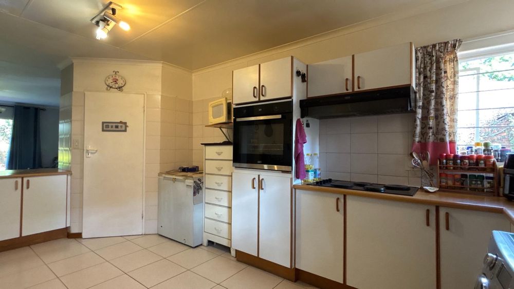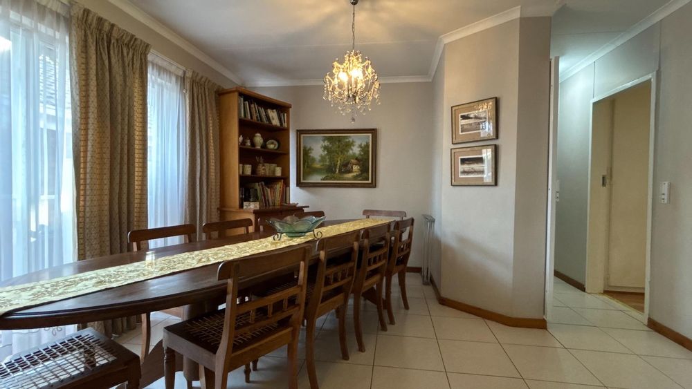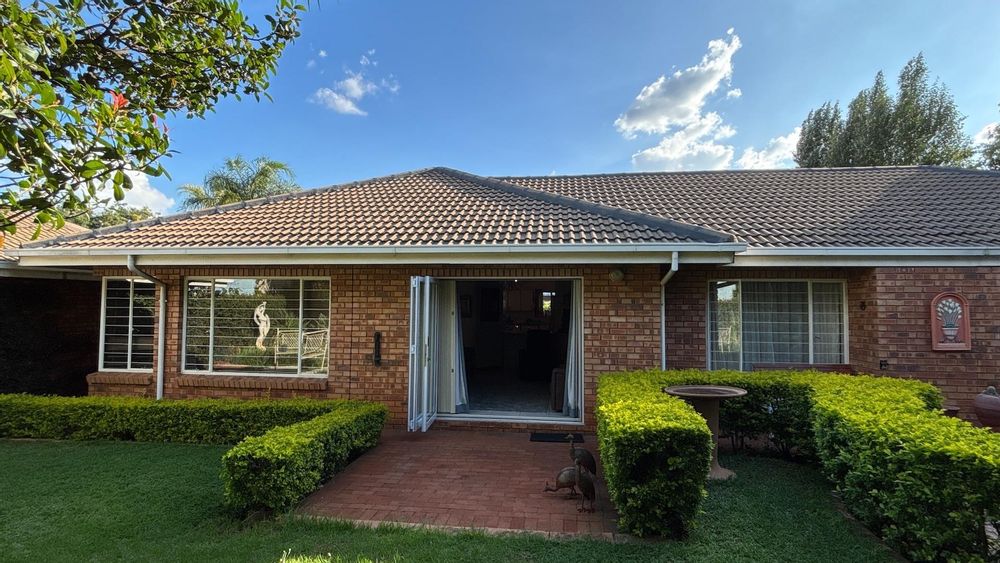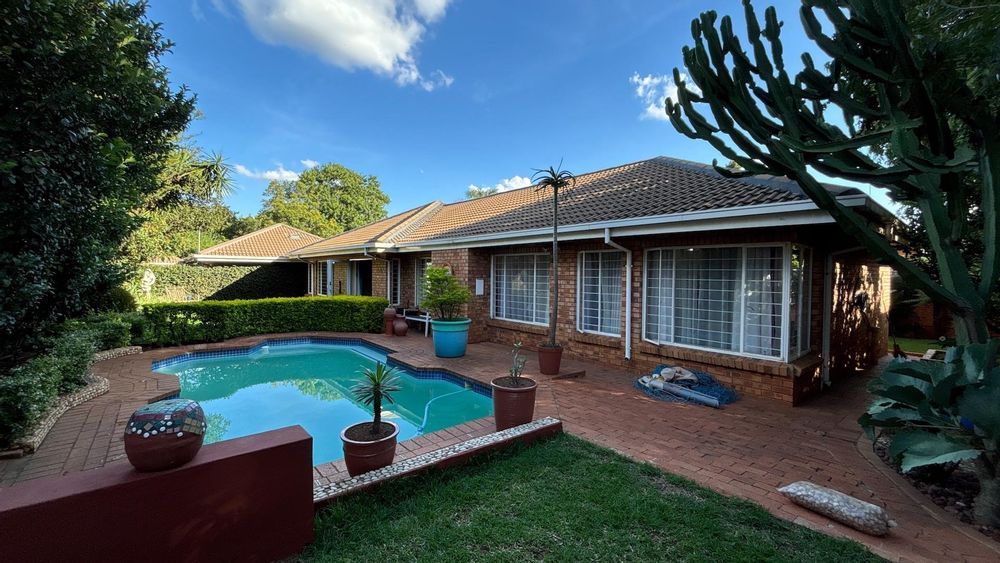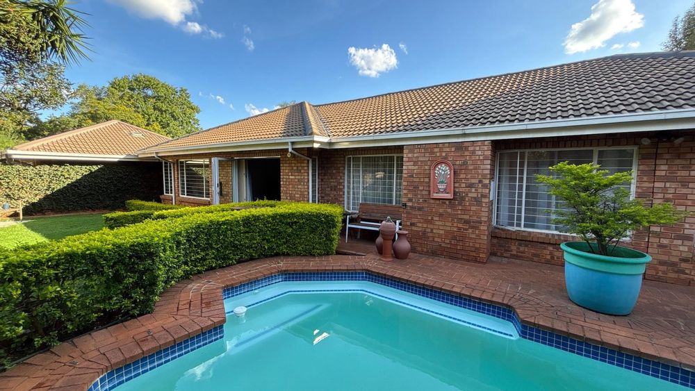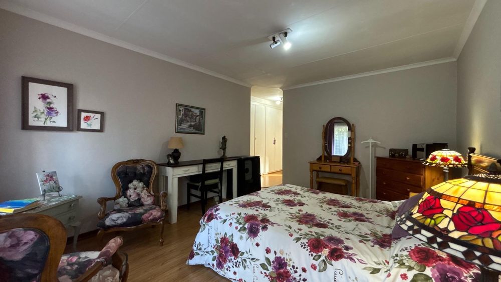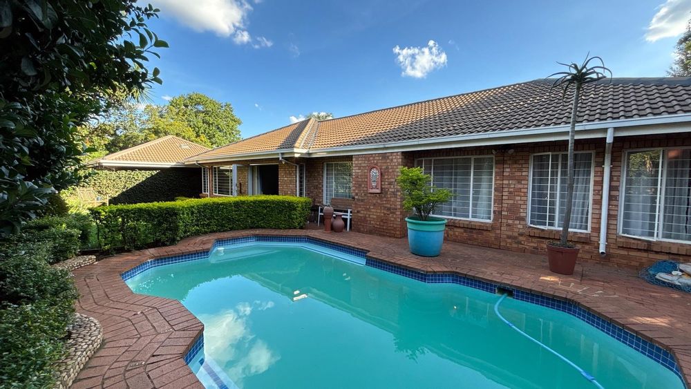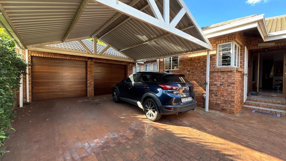 The large kitchen has a functional, open-plan design and benefits from a walk-in pantry. Parking is generously catered for with double garages and double carports. Ample additional safe parking is also available. The property's outdoor space includes a well-established, consistently maintained garden with a lovely pool and braai area.