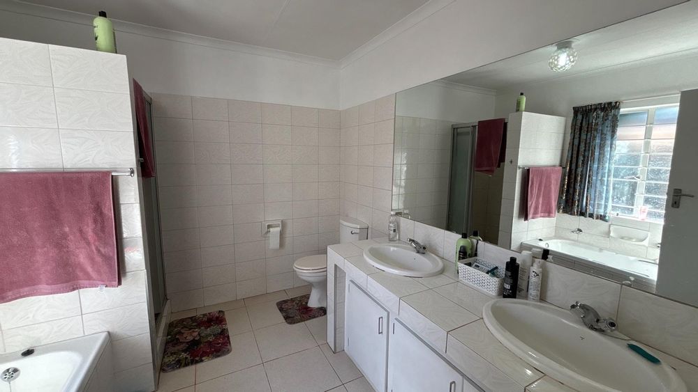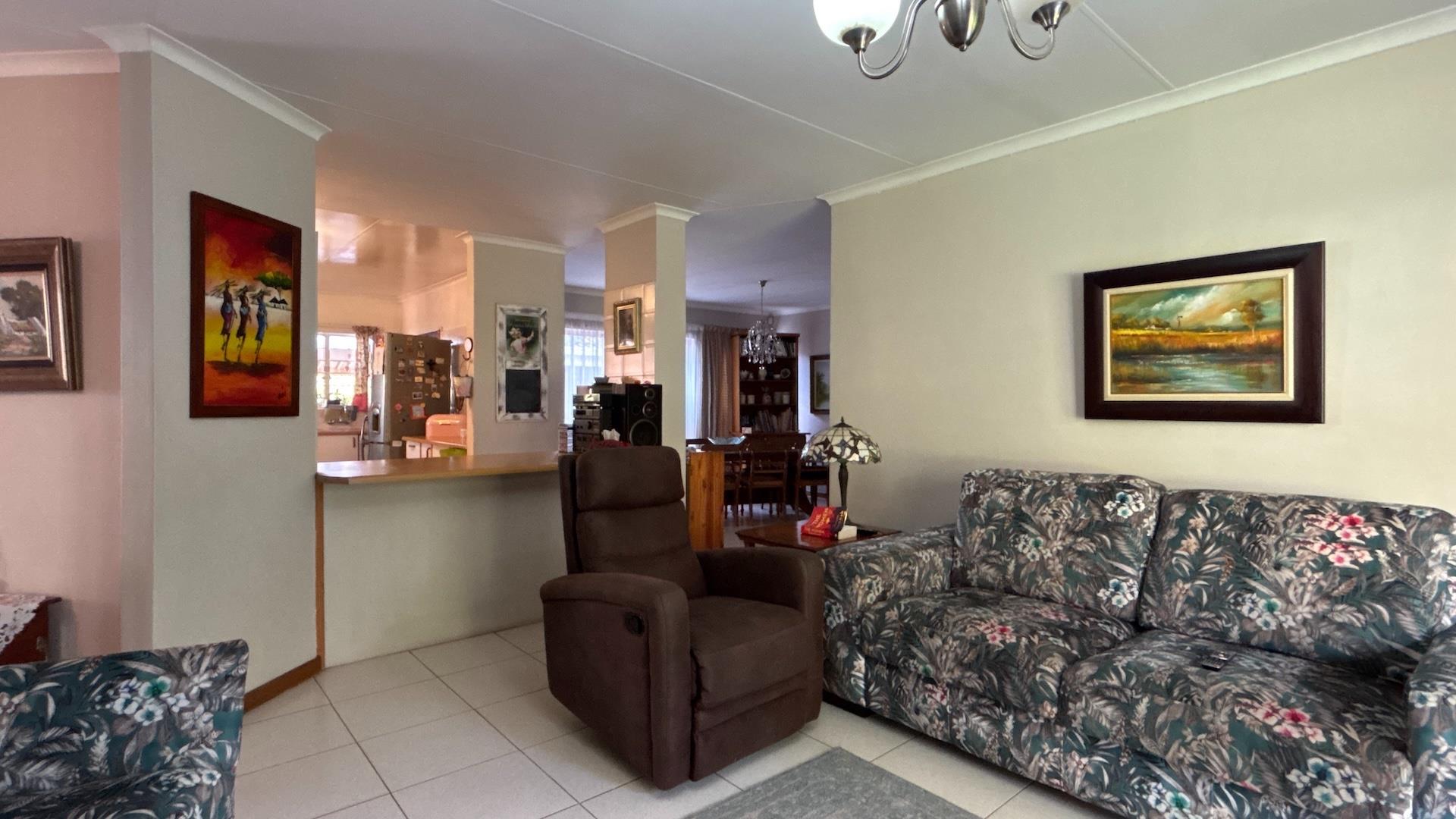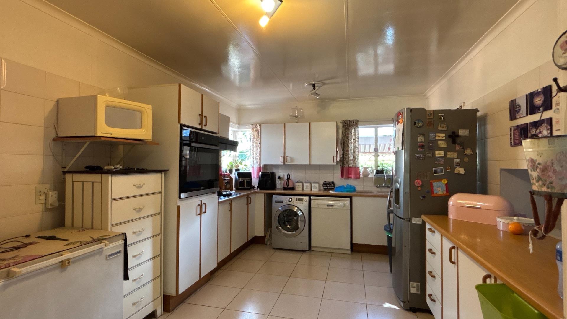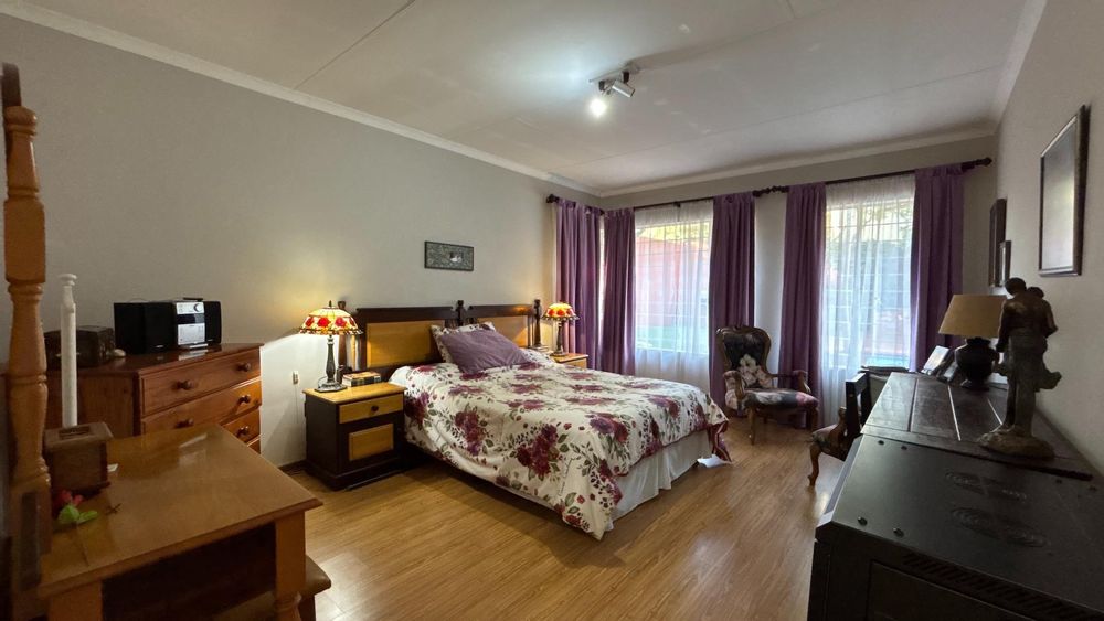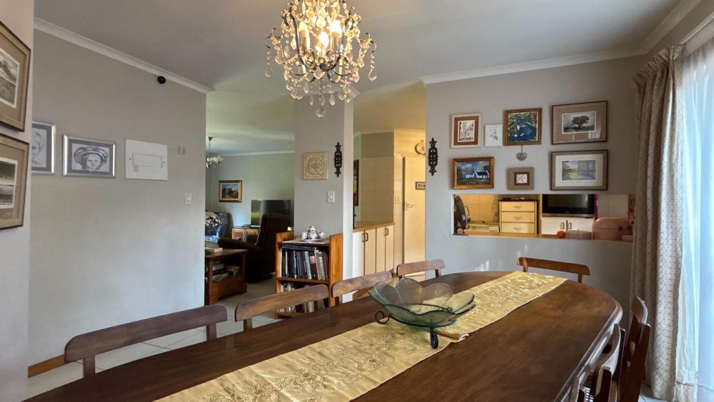 The large kitchen has a functional, open-plan design and benefits from a walk-in pantry. Parking is generously catered for with double garages and double carports. Ample additional safe parking is also available. The property's outdoor space includes a well-established, consistently maintained garden with a lovely pool and braai area.