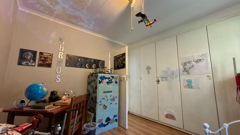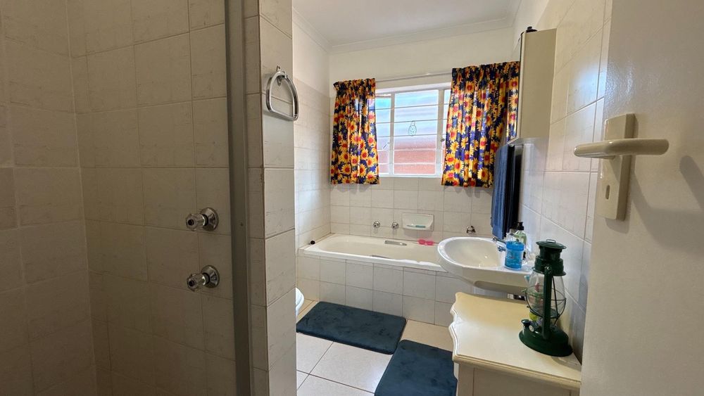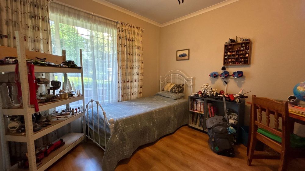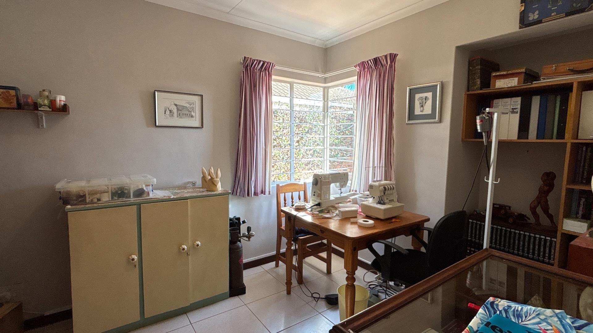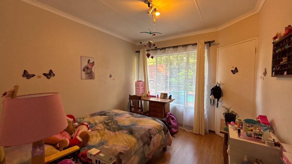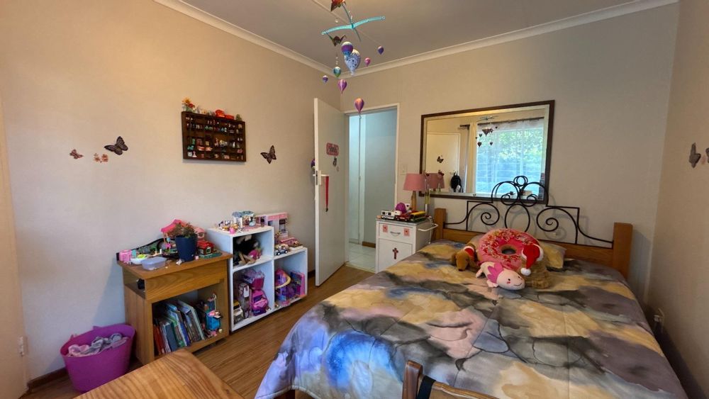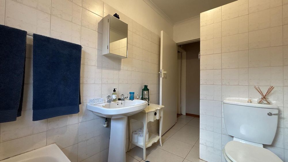 This property offers substantial accommodation across multiple living areas, providing flexibility for various household needs. The home features three north-facing bedrooms with laminated flooring providing ample space for family or guests. The three distinct living areas, allow for different activities and zones within the property, with the main living area leading to a beautiful, private garden. An additional study presents an opportunity to create a home office, adding further versatility to the accommodation. Both bathrooms are neatly tiled and feature a bath, shower, and basins.