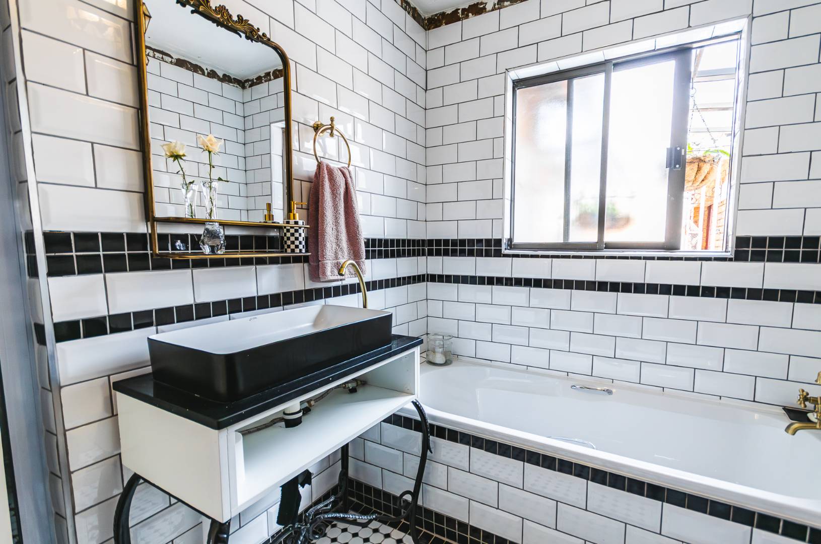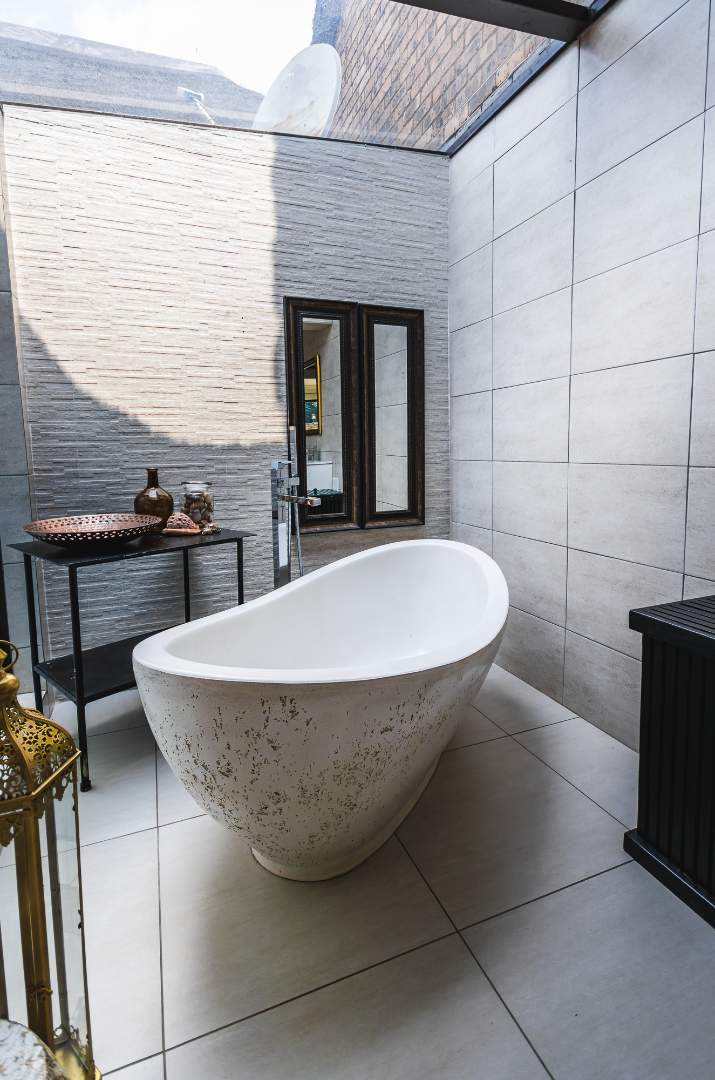 Think luxury designer bathrooms, floating ceilings, checkered floors and an outdoor entertainment area with kitchenette.