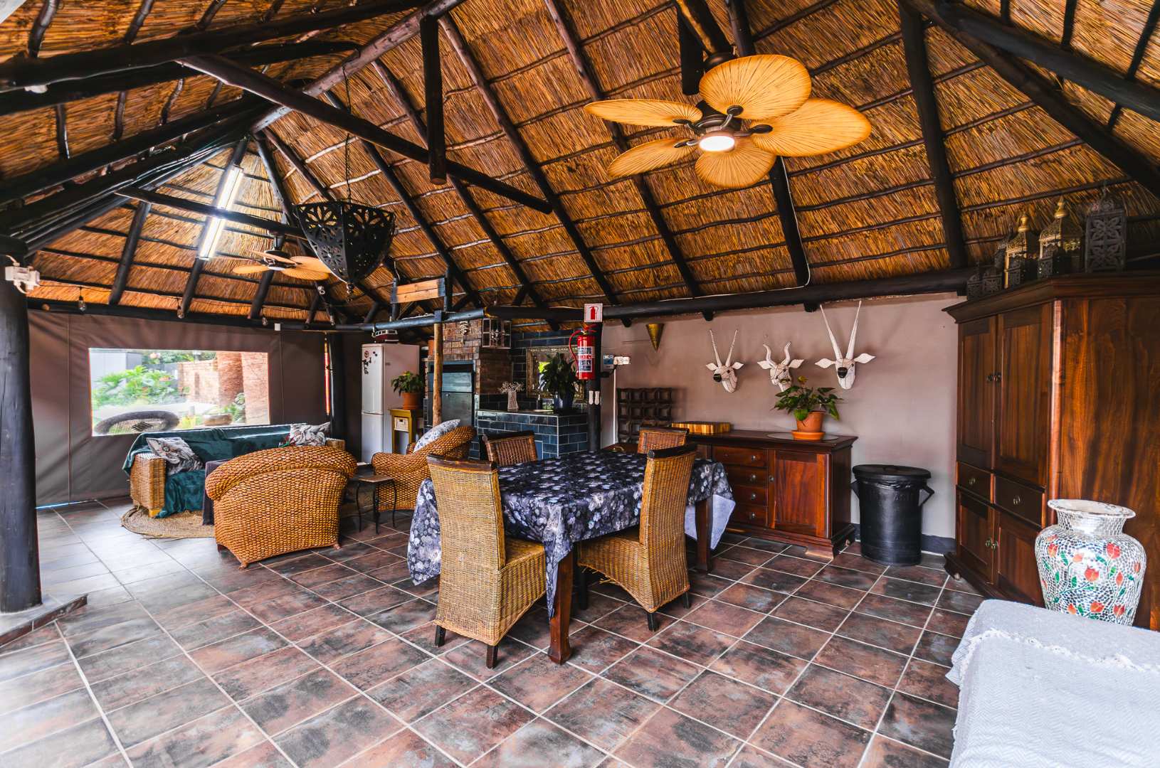 Open plan and double volume lounge and dining leading to the outdoors and private pool