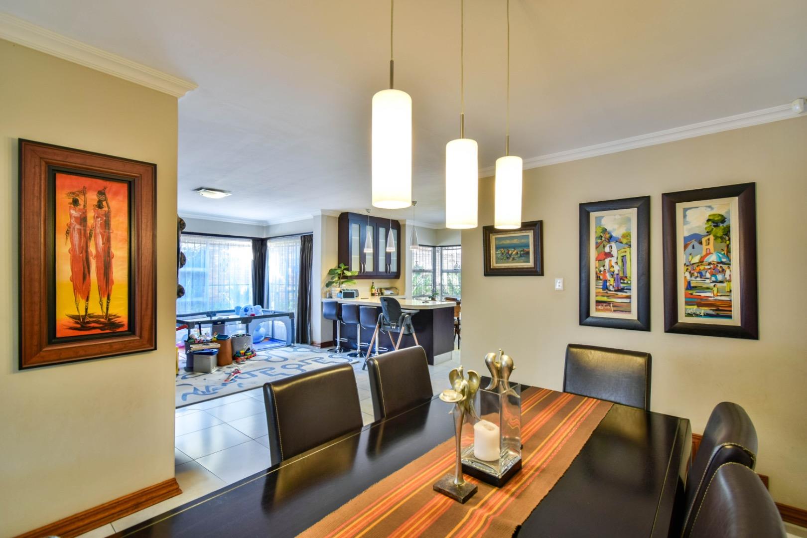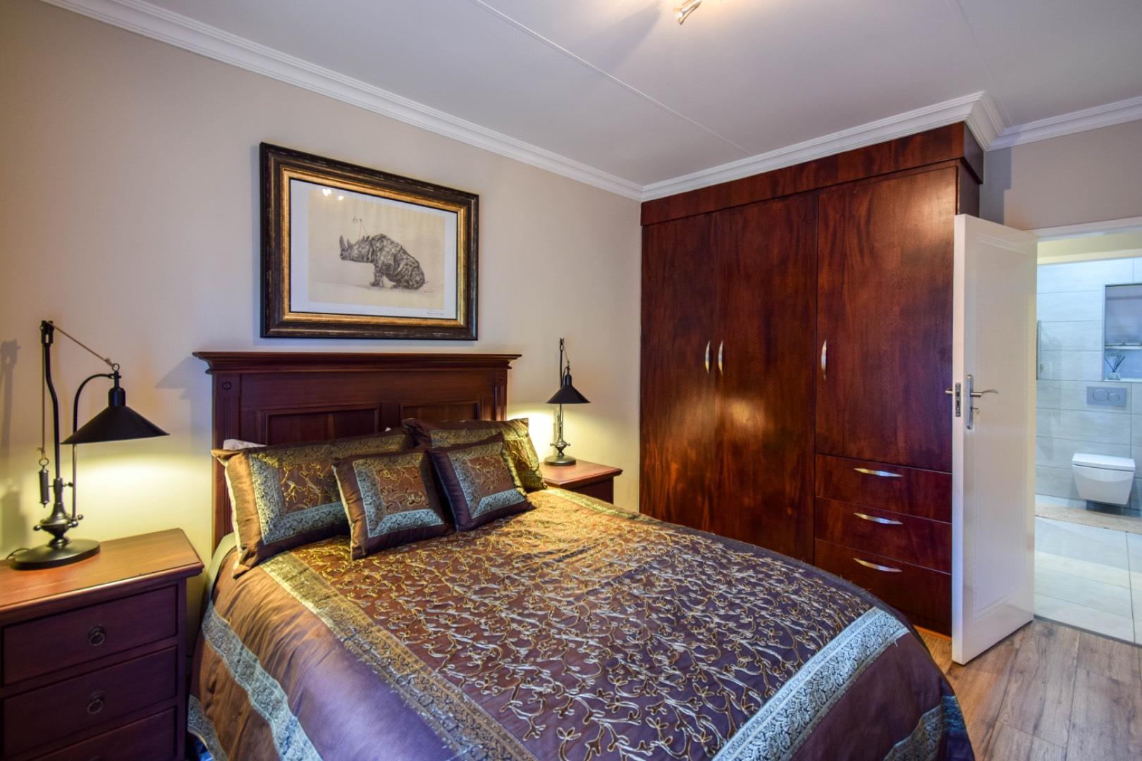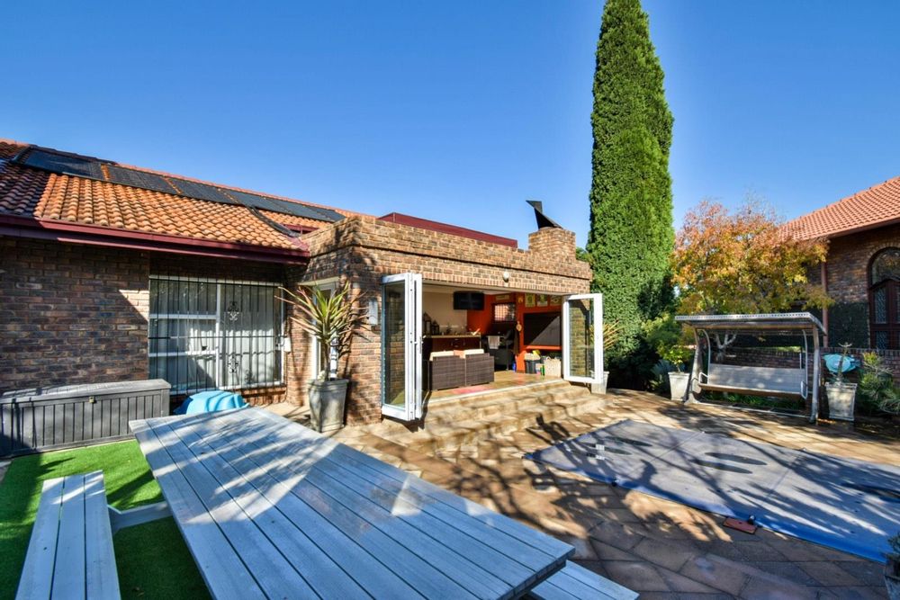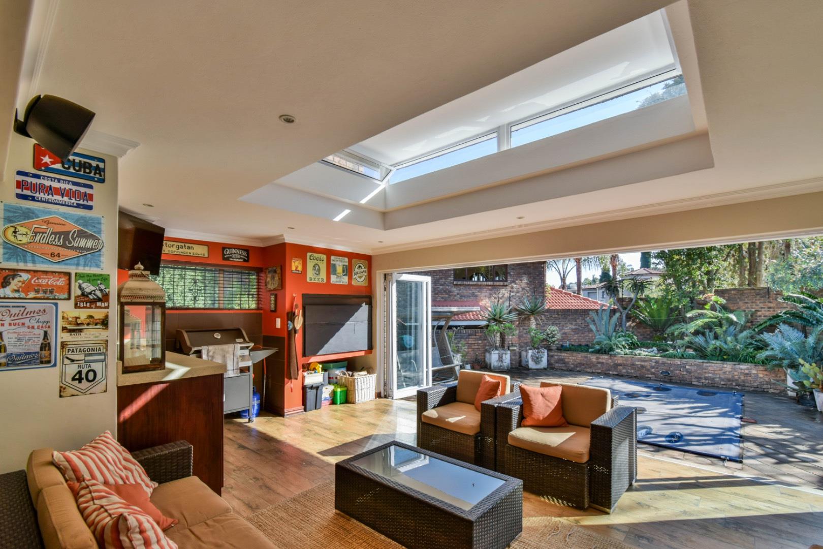 Quality tiled and laminate floors create a sophisticated backdrop for daily living. The open-plan layout connects seamlessly with an enclosed patio featuring a built-in braai, making every season perfect for gathering friends and family. When you need to cool off, the pristine (salt-chlorinated) pool area beckons, surrounded by mature gardens maintained by an efficient irrigation system.
