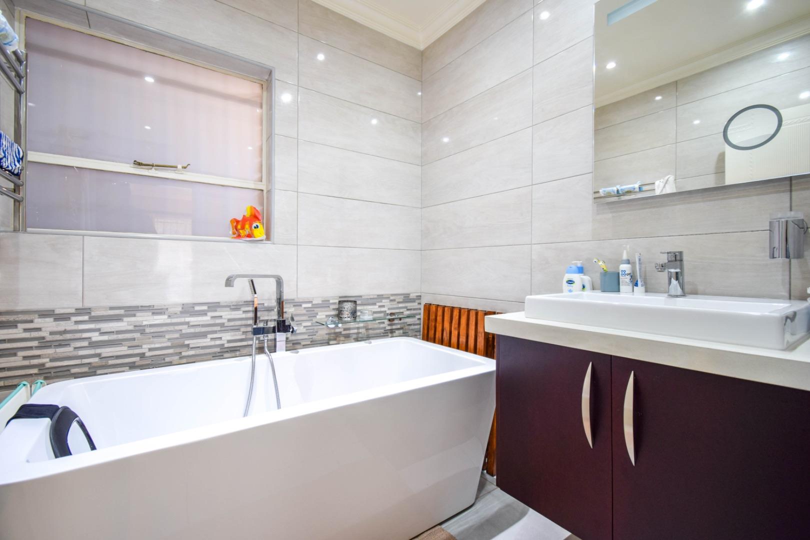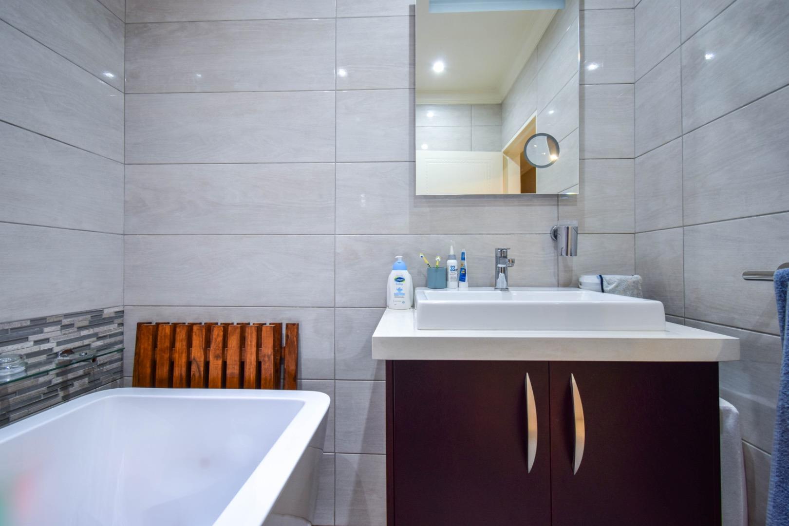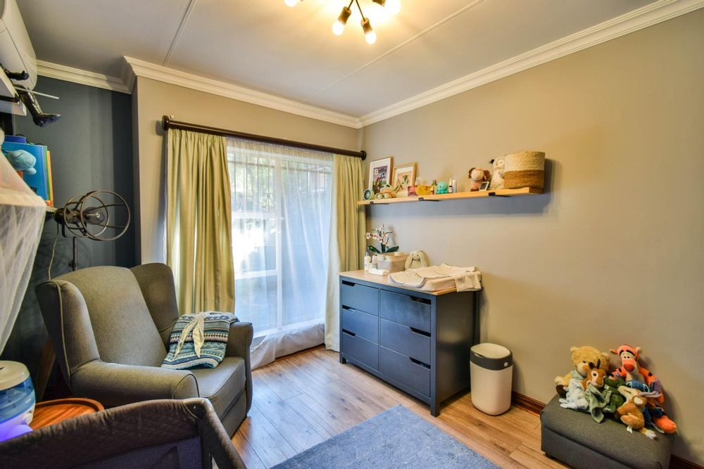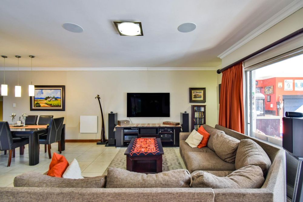 Quality tiled and laminate floors create a sophisticated backdrop for daily living. The open-plan layout connects seamlessly with an enclosed patio featuring a built-in braai, making every season perfect for gathering friends and family. When you need to cool off, the pristine (salt-chlorinated) pool area beckons, surrounded by mature gardens maintained by an efficient irrigation system.