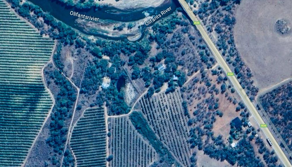 This land borders onto the Olifants river and has not been farmed on for many years. Soil eagerly awaiting seeds, some wildlife, goats and chickens, fruit trees and a touch of loving care. Wildlife comes and goes, roams around like they do. Point is, you are in the middle of wildlife country.