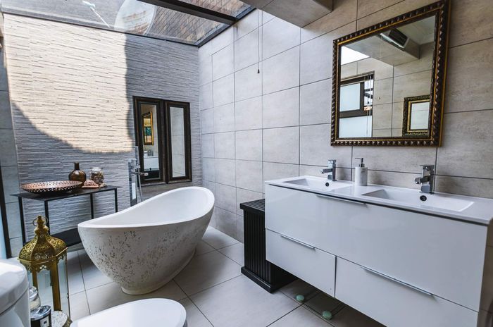 Relaxed family living in Olympus, Pretoria East — close to private schools and major routes. Farm-style double-storey townhouse with designer garden, big informal lounge, four beds, two-car garage.