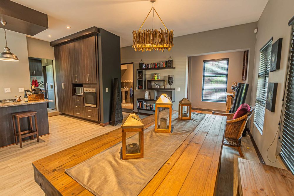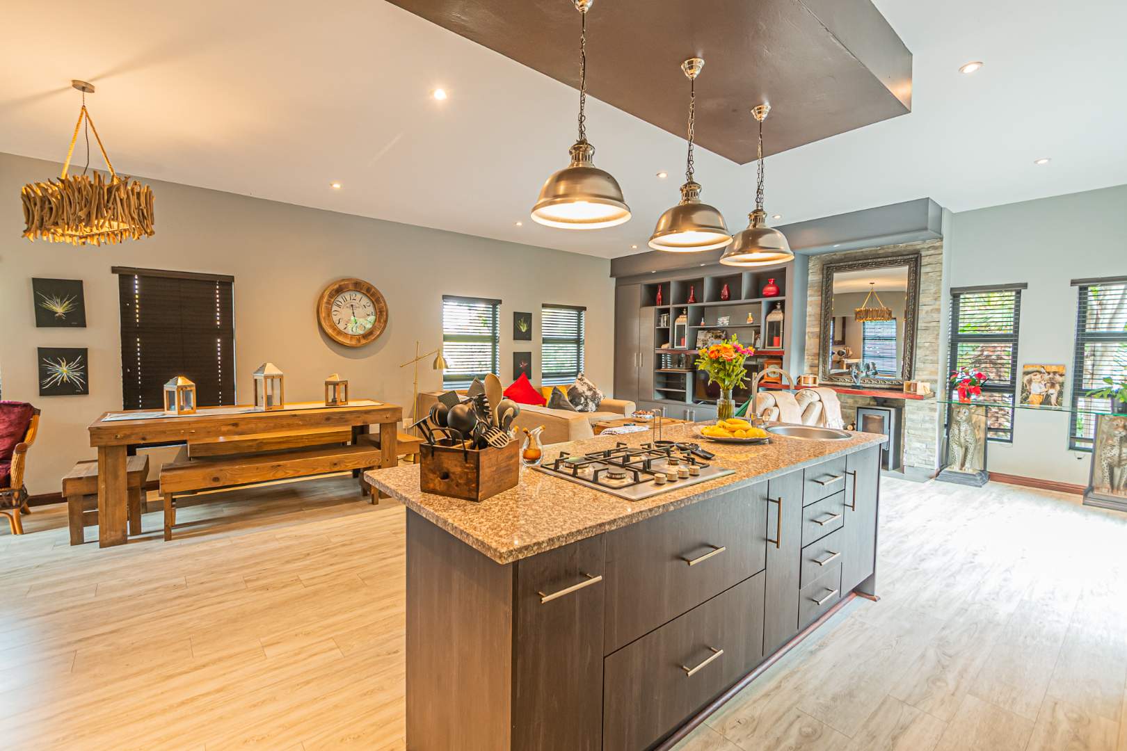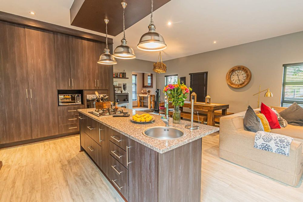 Upon entering this stunning property, you will be greeted by expansive living areas that seamlessly flow into one another, creating an inviting and airy atmosphere. The ground floor boasts a thoughtfully designed open-plan layout that includes a cozy living area with a built-in fireplace, perfect for warming up during chilly winter days. The living space extends effortlessly to a private patio equipped with a built-in braai, offering picturesque views of the lush, well-maintained garden—ideal for entertaining or simply unwinding in tranquility.
