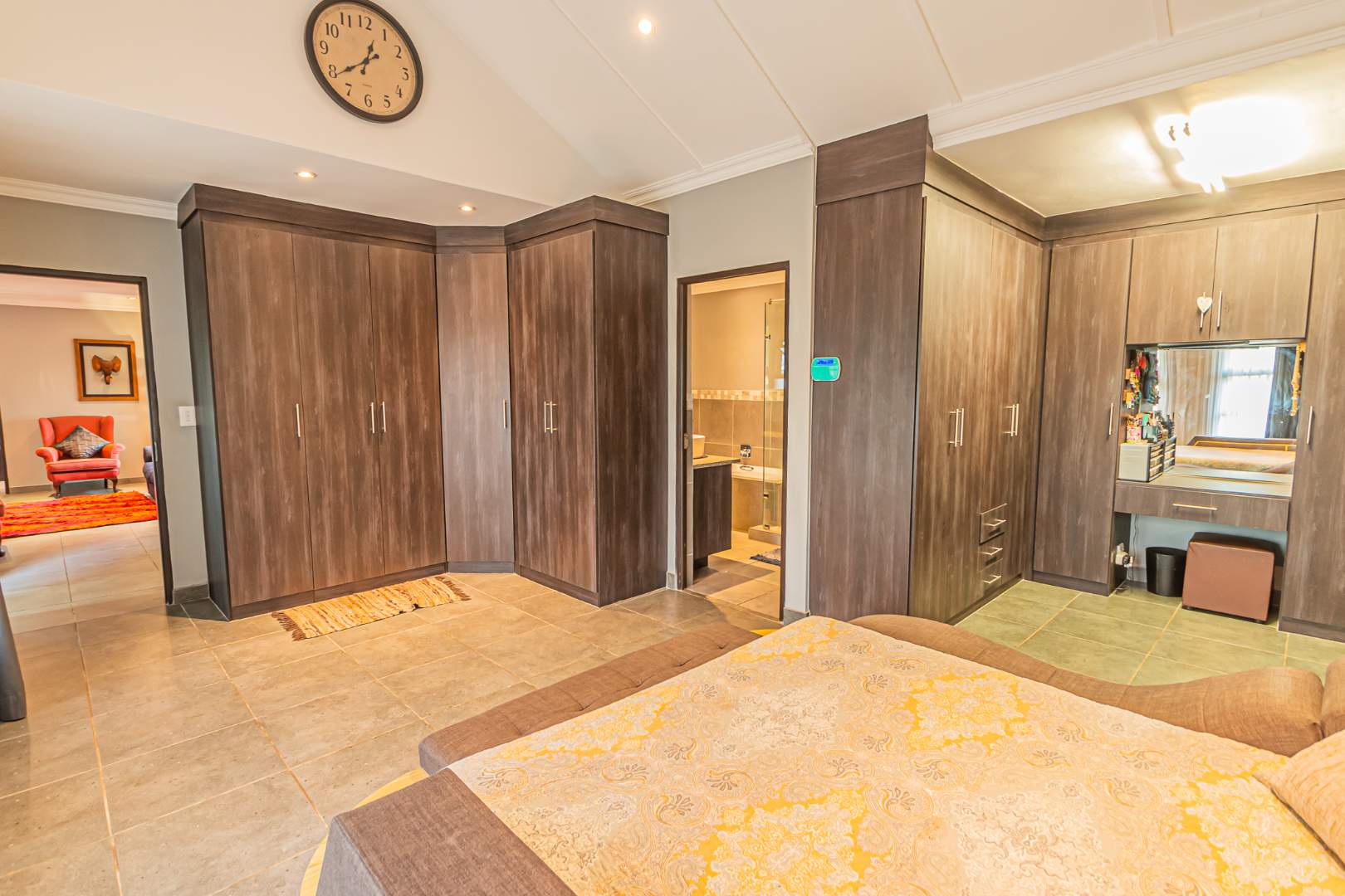 Upstairs, you will find an additional pyjama lounge, offering a versatile space that can be used as a family room, play area, or an entertainment zone. Modern amenities are highlighted throughout the home, including a solar hybrid geyser that efficiently heats water, promoting sustainability and reducing energy costs.