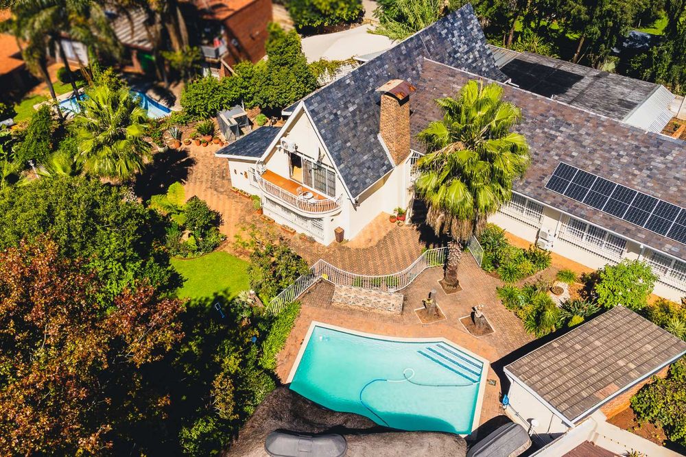Outside, enjoy the luxury of a large swimming pool set within a beautifully landscaped garden, complete with an enclosed entertainment pavilion for hosting memorable events. A sauna adds a touch of indulgence, while the double garage, adjoining hobby/storeroom, and expansive carport offer ample space for vehicles and storage. The included solar system, featuring nine 330-watt panels with batteries and an inverter, enhances energy efficiency and sustainability.