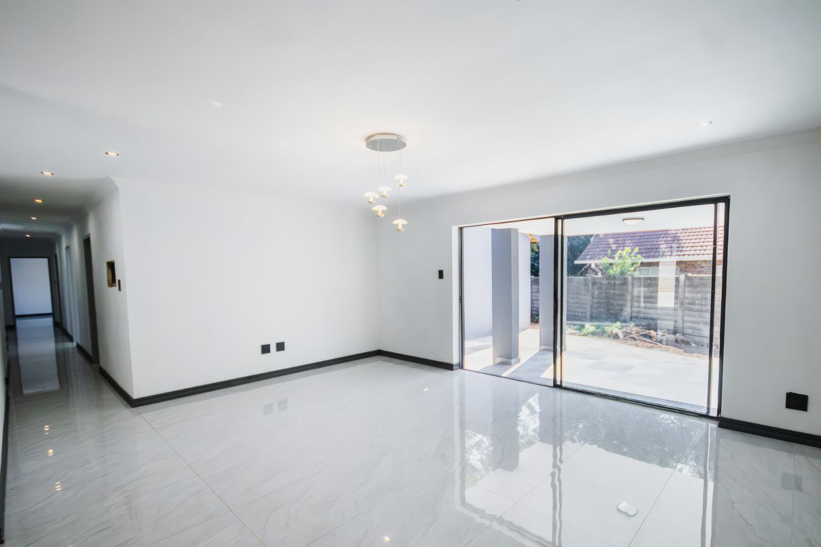 The home has been meticulously redone from top to bottom, with no expense spared to create an exceptionally spacious living environment. The open-plan living areas are impressively large, providing ample room for family gatherings and entertainment. Each bedroom is equipped with built-in cupboards, ensuring plenty of storage space, while the luxurious porcelain tile flooring throughout adds a touch of elegance and sophistication to the home.