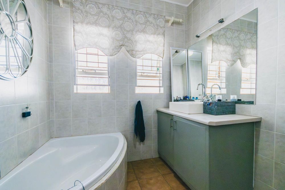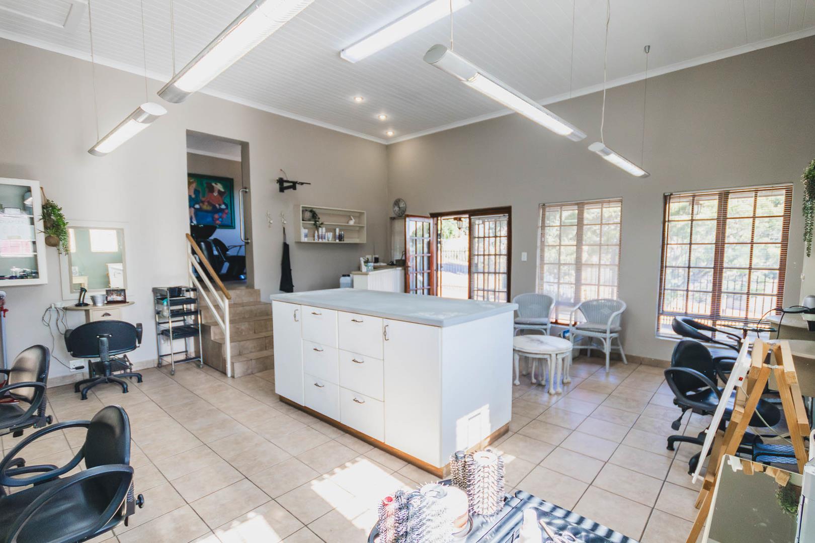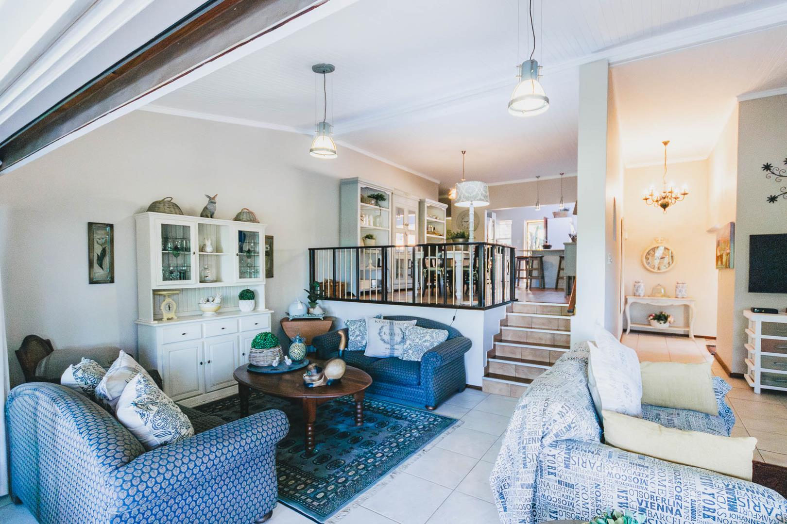 The main residence is a spacious, thoughtfully designed 3-bedroom home, complemented by two additional flats or a flat and office space, offering versatile living options. The primary dwelling includes 3 bedrooms, 2 bathrooms, and a cozy study nook. Its open-plan living areas are set on varying levels, seamlessly connecting to a captivating resort-style covered entertainment area. This delightful space overlooks a brand-new sparkling pool, surrounded by lush greenery, perfect for relaxation and social gatherings. This property has a comprehensive security system consisting of alarm, beams, cameras and electric fence, creating a secure environment to feel safe in.