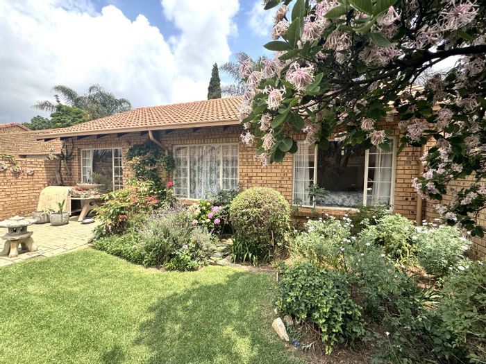 Sunlit cul-de-sac living in Moreleta Park with private front and back gardens and covered patio for entertaining, close to shops and schools; two-bed, one-bath, double garage.