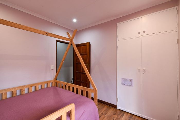 Discover this uniquely designed family home nestled in the sought-after, well-established neighbourhood of Waterkloof Ridge. This property offers an unconventional layout with three spacious bedrooms, two full bathrooms, and a convenient guest toilet.